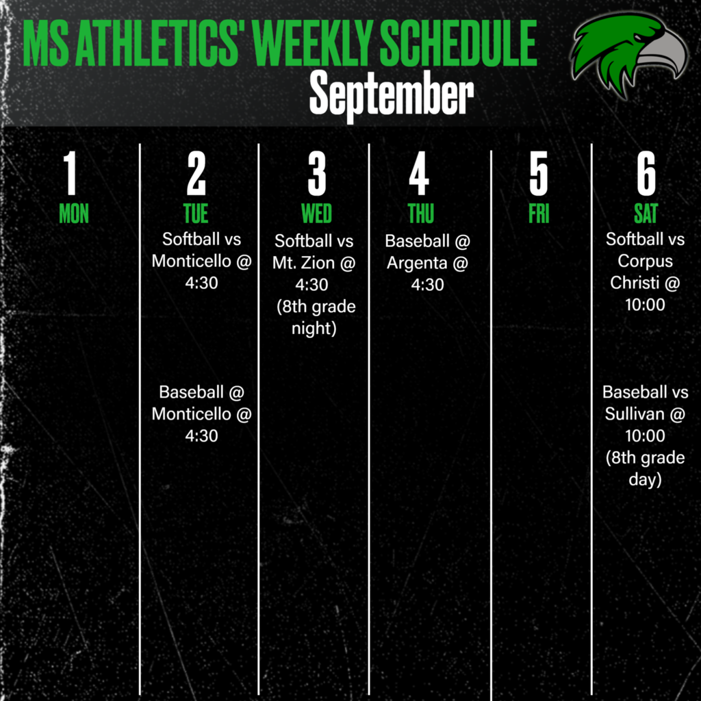 Upon entry of a Meridian HS or MS athletic event, each student will receive a raffle ticket. Students will write their name on the back of the ticket and turn it into the concession stand for that game. At the end of September, each school (MES, MMS, MHS) will draw names for winners. This month, each school will have 4 winners of $25 Amazon Gift Card. The more games you attend, the better your chances. Students, mark your calendars for all of our home games. SEE YOU HERE!
